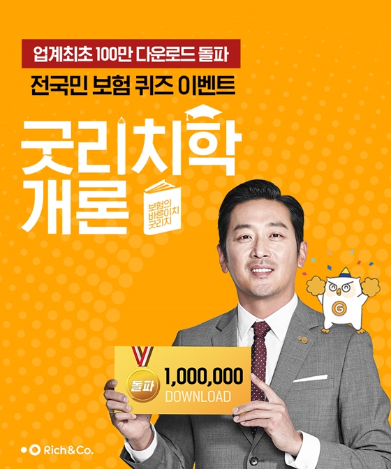 리치앤코는 통합 보험관리 플랫폼 굿리치 스마트폰 앱의 업계 최초 100만 다운로드 돌파를 기념해 오는 21일까지 전국민 보험퀴즈 이벤트 '굿리치학 개론'을 진행한다고 13일 밝혔다.