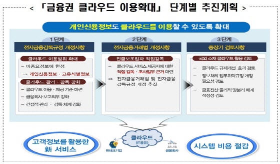 국내 금융회사와 핀테크 기업이 그동안 금지됐던 개인신용정보, 고유식별정보 등 중요정보 처리시스템까지 클라우드를 활용할 수 있는 방안이 추진된다.
