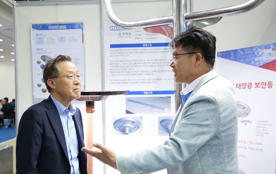 윤대희 신용보증기금 이사장이 14일 대구 엑스코(EXCO)에서 열린 '2018 사회적경제 박람회'에서 사회적경제 기업인을 만나 현장의 생생한 목소리를 청취했다.