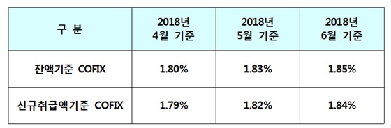 은행연합회는 16일 6월 코픽스가 잔액 기준으로 1.85%, 신규취급액 기준은 1.84%라고 공시했다.