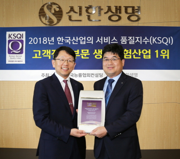 신한생명은 한국능률협회컨설팅(KMAC)이 주관하는 2018년 한국산업의 서비스 품질지수(KSQI) 고객접점부문 조사에서 2년 연속 1위로 선정됐다고 18일 밝혔다.