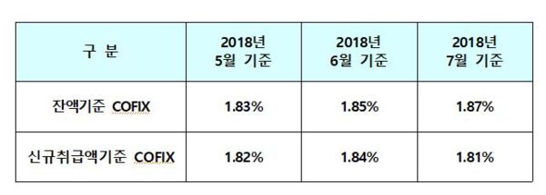 16일 은행연합회에 따르면 7월 코픽스가 잔액 기준으로 1.87%, 신규 취급액 기준은 1.81%라고 공시했다.