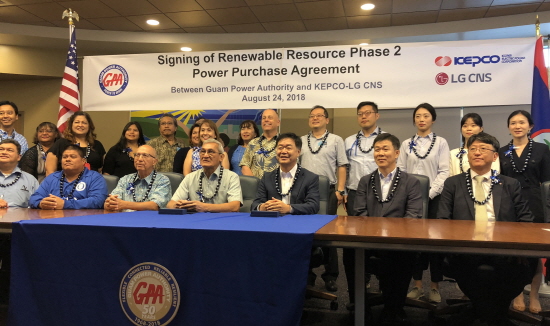 한국전력공사-LG CNS 컨소시엄이 미국 괌 전력청과 60MW 규모의 태양광 프로젝트 전력판매계약을 체결했다고 27일 밝혔다.