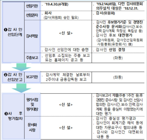 이와 관련해 금감원은 "기업이 감사인 후보평가 기준 문서화, 감사보수·시간·인력에 대한 사후평가 등 새 의무사항을 꼭 준수해야 한다"고 당부했다.