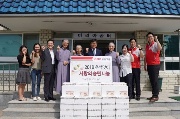 BNK금융그룹은 이번 행사를 통해 부산지역 54개 보호시설에서 생활하는 약 2300여명의 지역 소외계층에게 송편을 직접 전달했다.