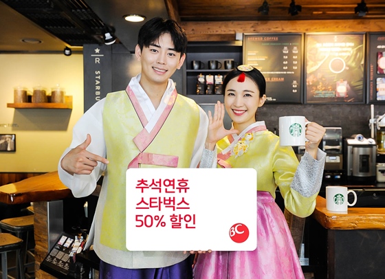 할인 혜택은 오는 21일부터 BC카드 앱 및 홈페이지를 통해 선착순으로 응모하고 BC카드로 온라인쇼핑 및 5대 홈쇼핑 업종에서 9~10월 두 달 동안 누적 5만원 이상 결제하는 고객 3만명에게 제공된다. 단, 연휴 기간 스타벅스에서 최초로 결제한 1건에 대해 할인 혜택을 제공한다(승인금액 기준 최대 7000원 할인, 카드 자체 혜택과 중복 적용 가능).