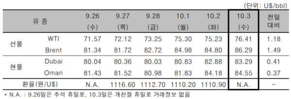 중동 두바이유는 전일 대비 배럴당 0.41달러 상승한 83.29달러로 집계돼, 2014년 11월3일 이후 가장 높게 나타났다.