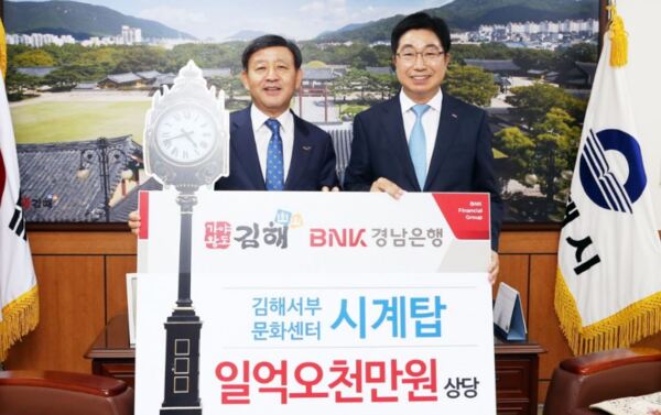 BNK경남은행은 김해시 위상 제고와 시민 편의 증진을 위해 김해시에 (재)김해서부문화센터 시계탑을 기증했다고 5일 밝혔다.