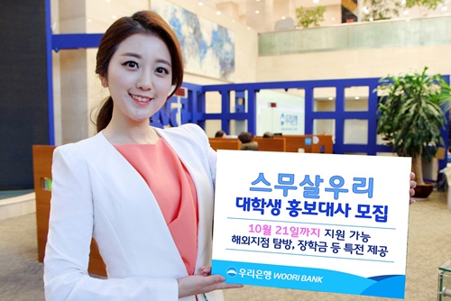 우리은행(은행장 손태승)은 21일까지 꿈꾸는 젊은이들의 도전과 혁신을 응원하고, 젊은이들과 소통하는 '스무살우리'의 대학생 홍보대사를 모집한다고 11일 밝혔다.