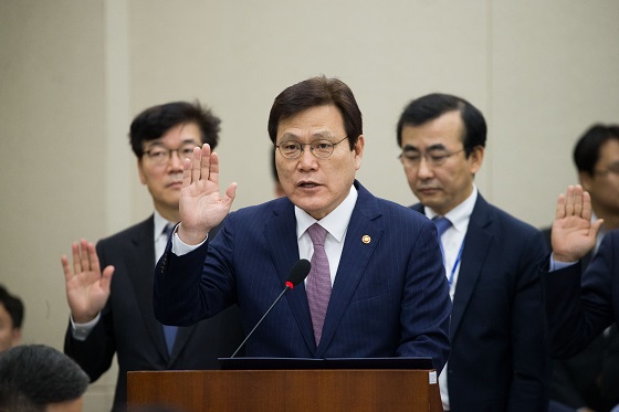 최종구 금융위원장은 은행의 가계대출 급증에 대해 인센티브 등 방안을 마련하겠다고 말했다. 정부 지원으로도 일자리 창출이 부진한데 대해서는 '아쉽다'고 밝혔다.