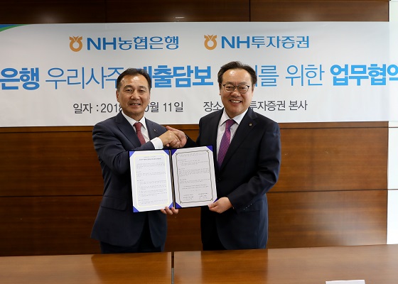 NH투자증권은 NH농협은행과 우리사주 대출 유치를 늘리기 위해 10월 11일 상호협력 업무협약을 NH투자증권 여의도 본사에서 체결했다고 밝혔다.