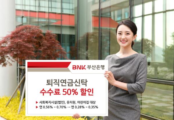 BNK부산은행은 사회복지시설(법인), 유치원, 어린이집을 대상으로 퇴직연금신탁 수수료(운용 및 자산관리수수료)를 할인한다고 15일 밝혔다.