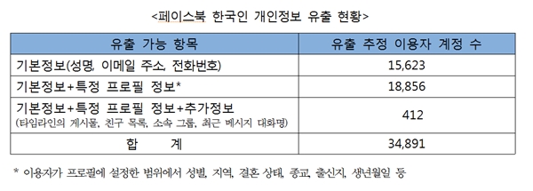 이에 방송통신위원회(이하 방통위)는 지난 1일 페이스북에 한국인 개인정보 유출여부, 유출규모 및 유출경위에 대한 자료를 공식적으로 요청한 바 있다. 방통위는 페이스북 한국 이용자의 개인정보 유출 계정이 약 3만5000개에 달하는 것으로 추정하고 있다.