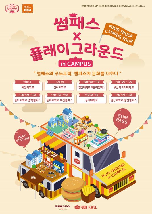 BNK부산은행은 지역 내 푸드트럭 콘텐츠 기획 스타트업인 푸드트래블과 함께 부산 지역 대학에서 푸드트럭 페스티벌 '썸패스 × 플레이그라운드 in CAMPUS'를 진행한다고 16일 밝혔다.