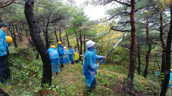 이들 참가자들은 2시간여 동안 영동고속도로 동해휴게소 뒷편(동해시 망상동 산8)에 조성된 ‘국민의 숲’ 일원에서 가지치기, 솎아베기, 하층식생 정비, 탐방로 보수, 전방대 주변 정리 등 숲 가꾸기 작업을 진행하면서 산림보호에 대한 중요성을 되새겼다.