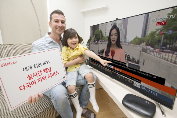 실시간 채널 다국어 자막서비스는 한국어로 방송되는 채널에서 시청자가 언어 설정을 통해 별도의 비용 없이 자막을 실시간으로 볼 수 있는 서비스이다.