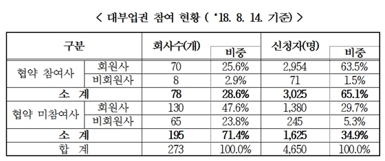 협약에 참여하지 대부업체는 전체 대부업체 중 71.4%에 이르는 195개 업체였으며, 이들 업체가 소유하고 있는 채권에 지원을 신청한 인원이 1625명에 달하는 것으로 집계됐다.