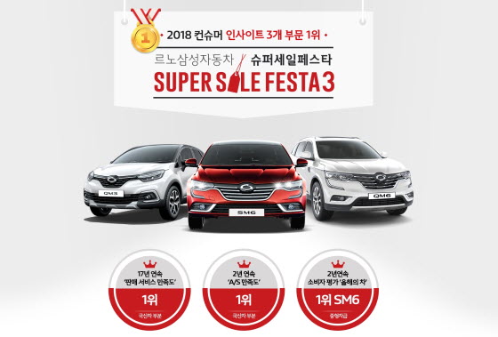 이번 이벤트는 르노삼성자동차가 ‘2018 컨슈머인사이트 자동차 기획조사’ 결과 3개 부문에서 1위에 오른 것을 기념하는 의미로 기획됐다. 컨슈머인사이트는 지난 2001년부터 매년 10만명의 자동차 소비자를 대상으로 ‘자동차 연례기획조사’를 진행하고 있으며 르노삼성자동차는 ‘판매서비스 만족도(SSQ)’와 ‘A/S 만족도(CSQ)’ 부문 1위를 차지했다. 또한, 프리미엄 중형 세단 SM6는 소비자가 평가한 중형차 부문 ‘올해의 차’로 2년 연속 선정됐다.
