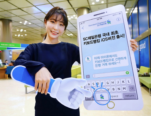 SC제일은행은 지난 1월 안드로이드 스마트폰용 '키보드뱅킹' 서비스를 국내 최초로 선보인데 이어 지난 19일부터 iOS버전의 아이폰에도 키보드뱅킹 서비스를 국내 최초로 도입했다고 밝혔다.