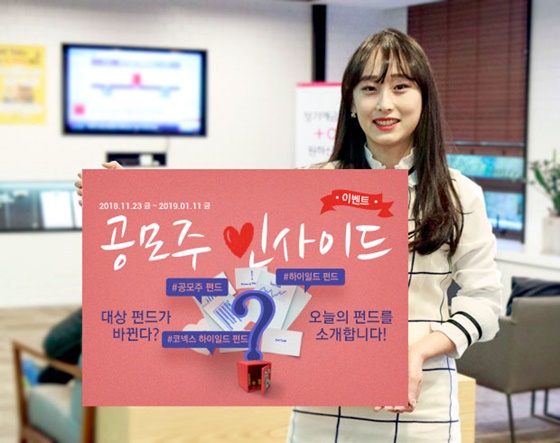 '공모주 인사이드' 이벤트는 일반 공모주 (2종)·하이일드 (2종)·코넥스 하이일드 (2종), 총 6종의 펀드를 100만원이상 매수 시 사용할 수 펀드쿠폰(2만원)과 가입금액별로 최대 5만원까지 백화점 상품권을 지급한다. 10만원 이상 적립식 펀드 매수 시 스타벅스 카페라떼 기프티콘을 지급한다.