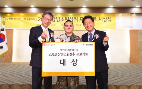 KB국민은행은 30일, 국방부 내 육군회관에서 '2018 장병소원성취 프로젝트' 시상식을 개최했다고 밝혔다.