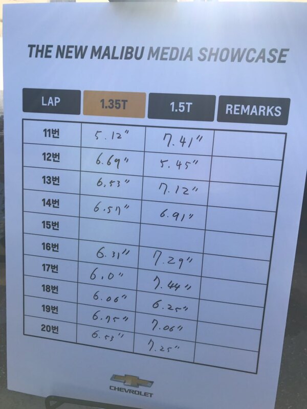 하지만 직접 달려보니 실제로 달랐다. 두 차량 다 풀엑셀로 밟고 달렸으나 1.35리터 E-터보 모델이 1초 안팎으로 더 빨랐다. 외연상 수치는 기존 말리부가 높았으나 주행성능은 뒤쳐지지 않는다는 점이 확인된 셈이다.