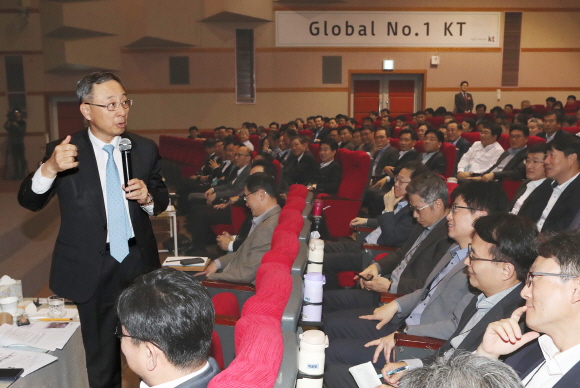 3일 통신업계에 따르면 황 회장은 이날 오전 KT 전 임직원에게 발송한 'CEO 생각나누기'란 제목의 이메일에서 "5G 상용화 시대를 맞아 4차 산업혁명을 주도하고, 지능형 플랫폼 사업자로 탈바꿈해야 한다"고 강조했다.