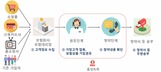 전화를 통한 보험모집은 고객에게 상품을 소개하는 '권유단계'와 보험계약 체결을 위한 '청약단계'가 모두 전화로 진행된다. 이러한 모집과정에서 설계사는 전화를 통해 고객에게 불이익이 될 수 있는 상품의 중요내용을 설명하고 이해여부를 확인해야 한다.