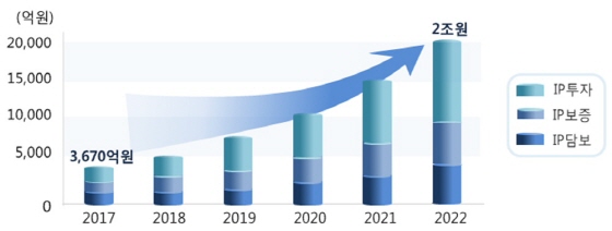 내년 법령개정을 마무리하고 세부과제의 효과적 이행과 점검을 위해 분기별로 IP 금융협의회를 개최할 계획인 정부는 지난해 3679억원에 그쳤던 IP금융 규모를 오는 2022년 2조원대로 늘린다는 목표다.