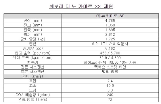 여기에 업그레이드된 운전자 중심의 최첨단 편의사양으로 드라이빙 본연의 쾌감을 극대화했고 기존의 근육질 외형을 자랑하는 머슬카(Muscle car) 이미지를 유지하면서도 과감한 디자인 변화를 시도했다는 게 쉐보레의 설명이다.