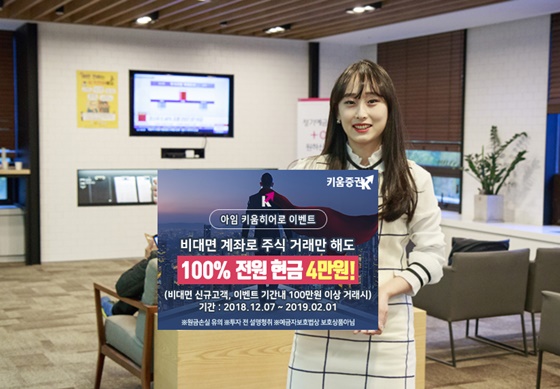 '아임 키움히어로' 이벤트는 내년 2월 1일까지 진행되며 이벤트를 신청한 최초 비대면 계좌 개설 고객에게 이벤트 기간 내 1만원 이상 주식 거래 시 현금 1만원을 지급한다. 100만원 이상 주식 거래 시에는 3만원을 추가로 지급한다.