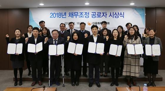 신용회복위원회는 2018년도 과중 채무자 채무조정 지원에 공로가 큰 금융회사, 협회 등 유관기관 임직원을 선정해 '2018 채무조정 지원 공로상'을 시상했다고 18일 밝혔다.