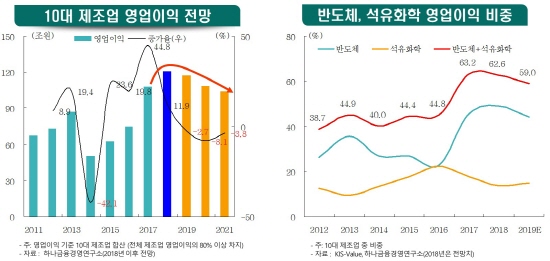 동 연구소는 반도체, 석유화학 등 국내 제조업 전체 이익의 87.4%를 차지하는 10대 산업의 향후 3년간 이익 규모를 추정하며 이와 같은 결론을 내렸다.