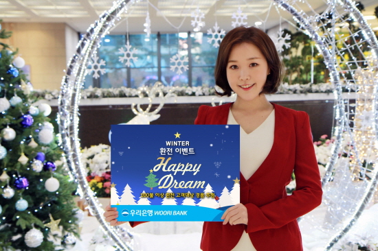 우리은행은 겨울 여행 성수기를 맞아 내년 2월28일까지 상품권, 커피기프티콘 등 경품과 환율 우대를 제공하는 '해피 드림(HAPPY DREAM)' 겨울 환전 페스티벌을 실시한다고 20일 밝혔다.