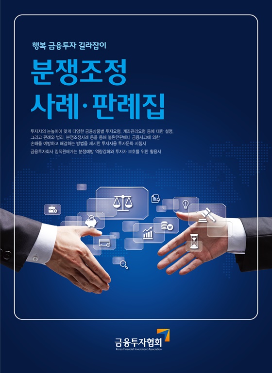 금융투자협회는 투자자의 이해도 제고 및 사고예방·금융투자회사 임직원의 투자자 보호 역량 강화를 위해 '분쟁조정사례·판례집(증보판)'을 발간할 예정이라고 31일 밝혔다.