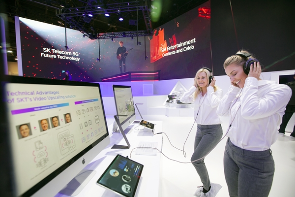 SK텔레콤은 먼저 아시아 대표 엔터테인먼트 기업인 SM엔터테인먼트와 함께 '5G x Next Entertainment(SKT 5G와 SM 콘텐츠가 만들 차세대 엔터테인먼트)'를 테마로 센트럴 홀(Centrall hall)에 공동 전시 부스를 마련하고 소셜(Social)VR, 홀로박스(HoloBox), 인공지능 미디어 기술 등 다양한 차세대 미디어 서비스를 구현한다.