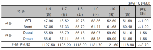중동 두바이유는 전일대비 배럴당 1.56달러 오른 61.16달러로 집계됐다.