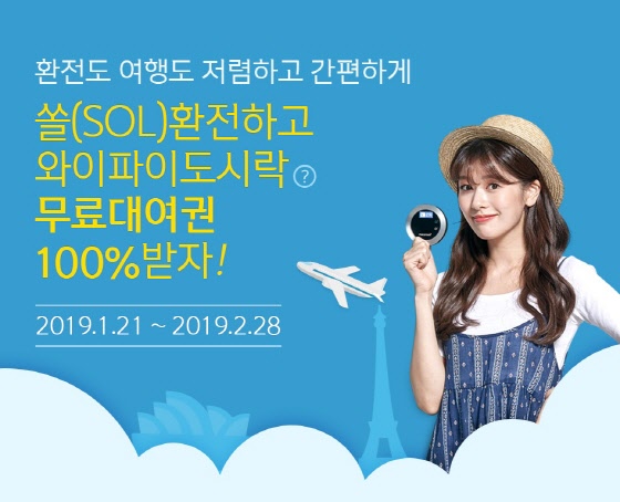 신한은행은 해외여행에 나서는 고객들을 대상으로 '쏠(SOL)로 환전하고 와이파이도시락 무료이용권 100% 받자' 이벤트를 실시한다고 22일 밝혔다.