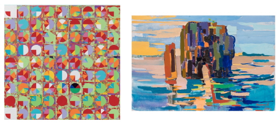 러시아 작가 나탈리아 포포비치의 'Sea-Gates'은 간결하고 힘 있는 선과 형태, 그리고 대담한 색채의 구성과 표현이 돋보이는 작품으로 일반적인 풍경화, 정물화, 인물화와 구분되는 작가의 특징이 잘 드러난다.