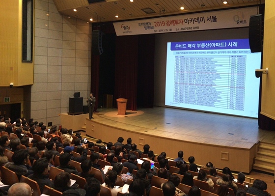 캠코(한국자산관리공사)는 25일 서울 대치동 소재 강남구민회관 공연장에서 공매 예비투자자 등 500여명이 참석한 가운데 우리은행과 함께 '2019 공매투자 아카데미 서울'을 개최했다고 밝혔다.