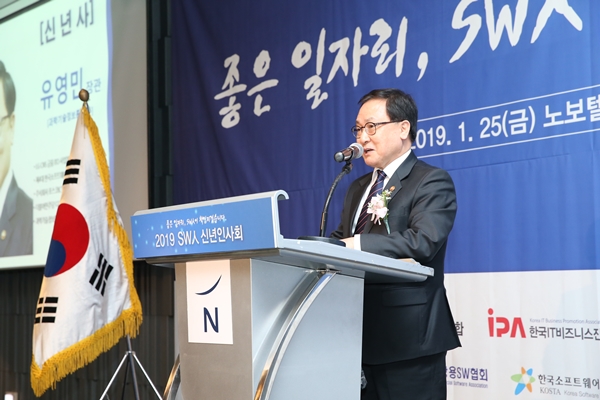 유영민 장관은 지난 25일 노보텔 앰배서더 서울 강남 호텔에서 열린 '2019 SW人 신년인사회'에서 "작년 말 국회에 제출한 'SW산업진흥법' 전부개정안이 조속히 시행될 수 있도록 잘 준비하고 개선된 제도들이 현장에 잘 착근될 수 있도록 노력하겠다"며 이같이 말했다.