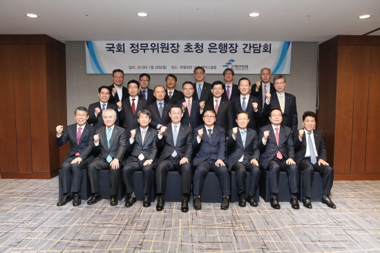 이날 간담회에는 정무위원장 및 은행연합회장과 15개 은행(산업·우리·SC제일·하나·기업·국민·수출입·수협·대구·부산·광주·전북·경남·케이뱅크·카카오은행), 신용보증기금·기술보증기금 총 17개사 대표가 참석했다. 금융연수원, 금융연구원장 등 유관기관장도 배석했다.