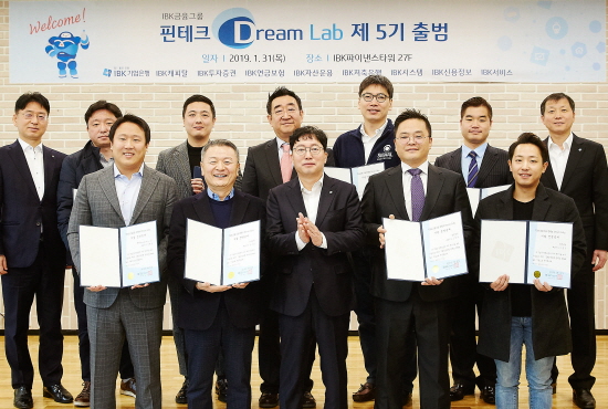 IBK기업은행은 31일 을지로 IBK파이낸스타워에서 핀테크분야 스타트업을 육성하기 위한 'IBK금융그룹 핀테크 드림랩(Dream Lab)' 5기 출범식을 가졌다고 밝혔다.