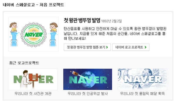 신현경 네이버 리더는 "우리나라에서 발생했던 특별한 날을 기념하고자 2008년부터 로고 디자인을 테마별로 다양하게 제작해 이용자들에게 정보를 친근하게 전달하기 위해 노력해왔다"며 "2월부터는 우리나라 뿐 아니라 세계 속 의미있고 특별한 첫 순간들을 네이버 첫화면에서 확인하고 재미와 감동을 함께 나눌 수 있기를 기대한다"고 말했다.