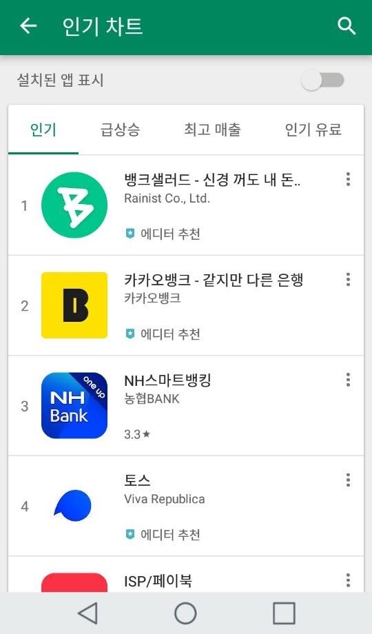 데이터 기반의 돈 관리 서비스 뱅크샐러드가 설 연휴 동안에 구글플레이 금융 분야 1위를 차지했다.