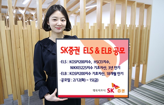 SK증권은 12일부터 오는 15일(금)까지 주가연계증권(ELS) 1종 및 주가연계파생결합사채(ELB) 1종을 공모한다고 밝혔다.