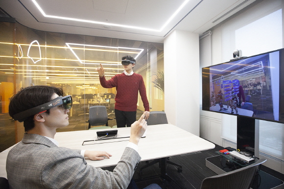 원거리에 있는 회의 참가자들이 동시 접속해 실제 같은 방에 모여 있는 것처럼 느낄 수 있다. AR 글라스를 통해 가상공간에서 대용량 영상자료를 함께 보거나 3D 설계도면을 펼쳐서 회의를 할 수 있는 시스템이다. 비용과 시간을 들여 출장을 갈 필요가 없어지게 된다.