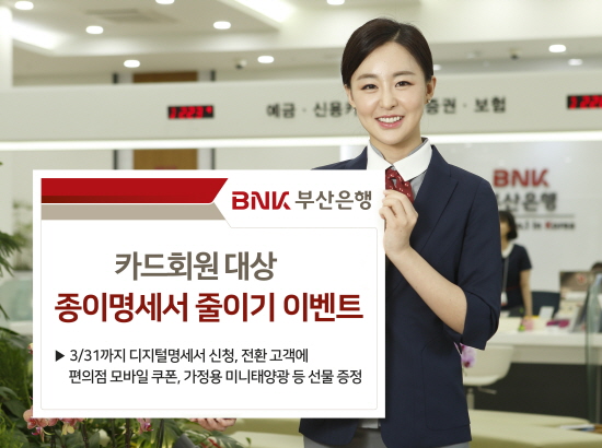 BNK부산은행이 카드회원을 대상으로 3월31일까지 '종이명세서 줄이기 이벤트'을 실시한다.