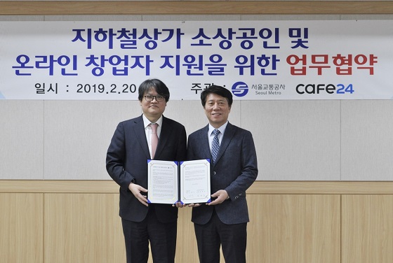 글로벌 전자상거래 플랫폼 카페24는 서울교통공사와 20일 서울시 성동구 서울교통공사 본사에서 온라인 창업 지원을 위한 상호 업무 협약을 체결했다고 밝혔다.
