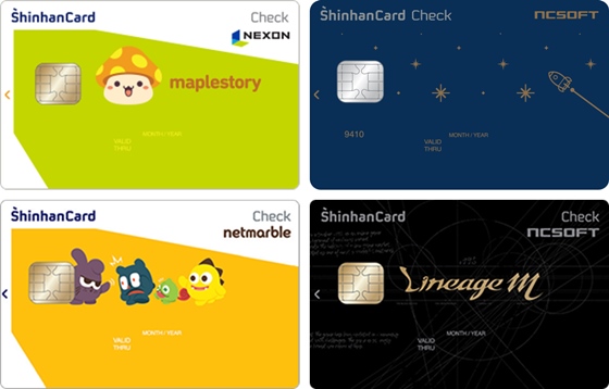 신한카드는 보다 앞서 게임 제휴카드 라인업을 구성했다. 2017년 △넷마블 신용/체크카드 △메이플스토리 체크카드 △리니지M 신용/체크카드 △엔씨소프트 신용/체크카드 등을 연이어 선보였다. 구글 플레이 스토어, 애플 앱스토어, 원스토어 등 주요 앱마켓에서 이용금액의 5~10%를 할인해주는 혜택이 특징이다.